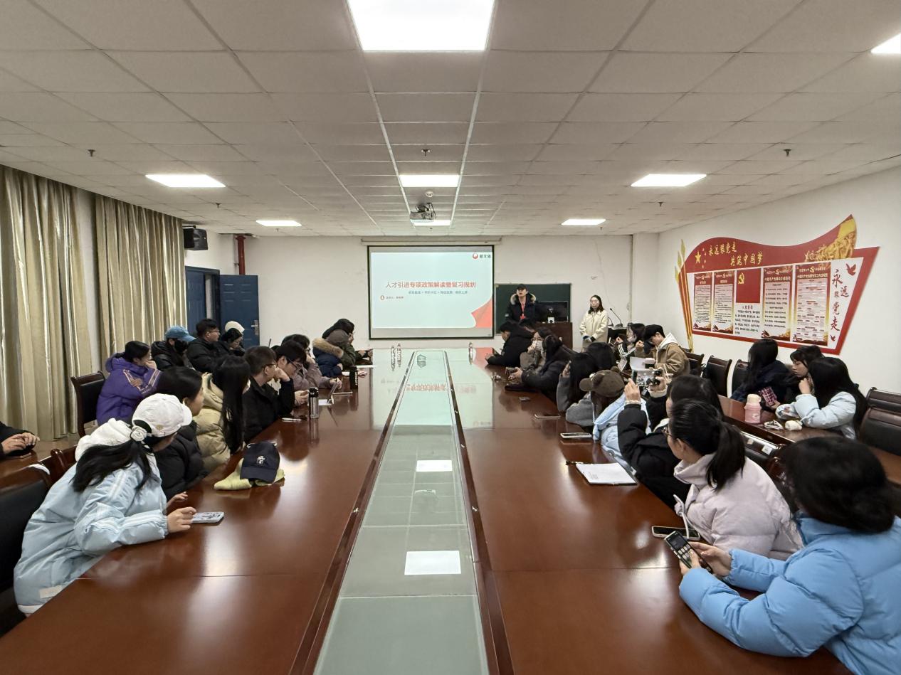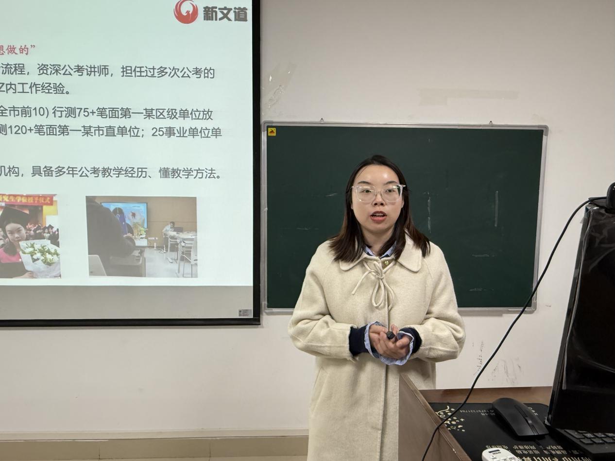 讲座围绕五大核心环节展开,内容丰富详实、针对性极强。陈老师以荆州市人才引进政策为切入点,用通俗易懂的语言详细拆解了人才引进考试的时间节点与完整流程,让同学们对考试环节有了清晰认知。随后,她从政策倾斜优势、职业社会地位、岗位稳定性及长远发展晋升空间等多个维度,深入剖析了人才引进的核心价值与当前行业发展形势,帮助同学们明确了备考的重要意义与方向。 在备考干货分享环节,陈老师重点强调了三大备考要点:一是善用各类权威信息渠道,精准获取备考资源;二是谨慎开展专业筛选,结合自身优势选择适配岗位;三是报名信息务必以官方发布为准,避免遗漏关键要求。